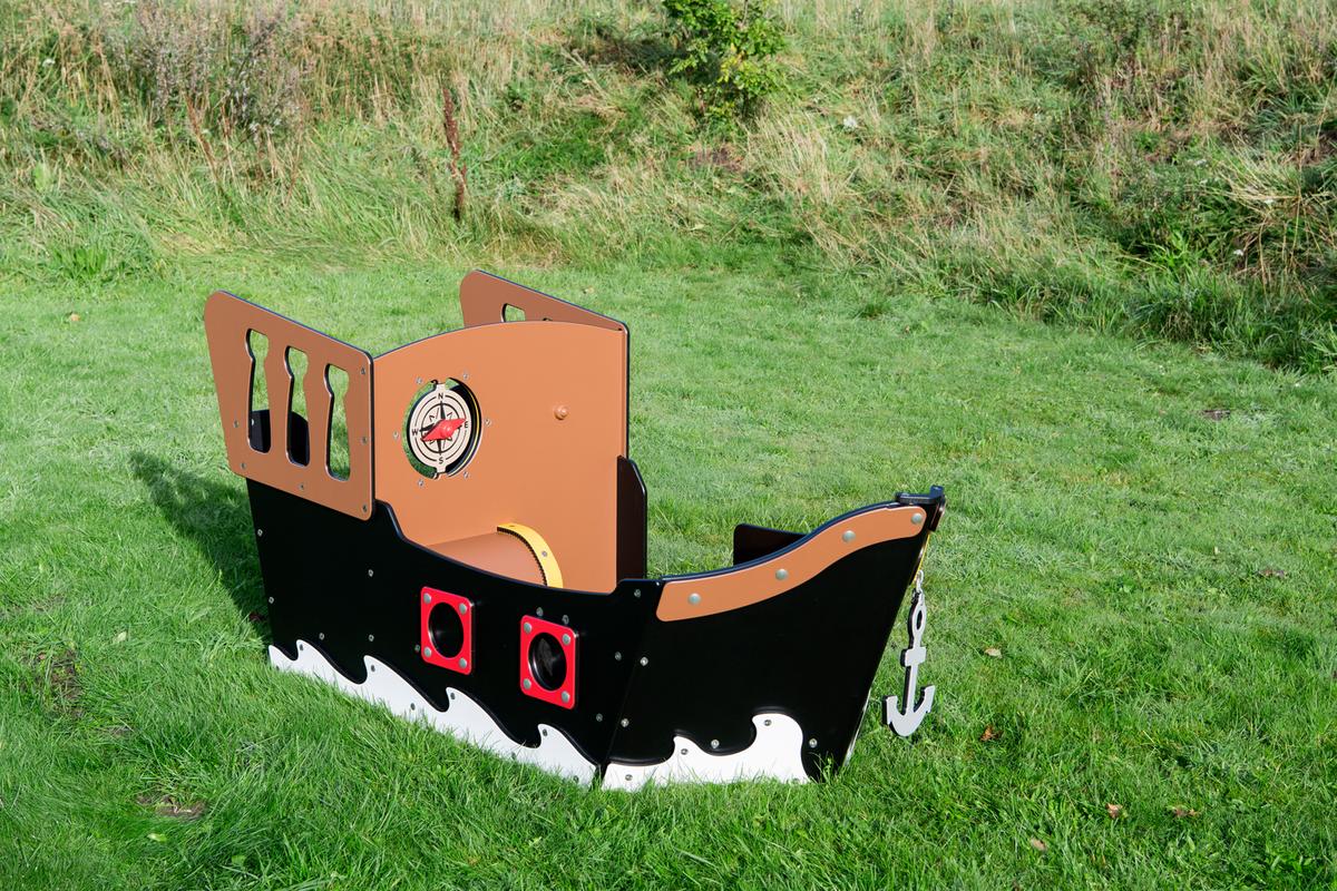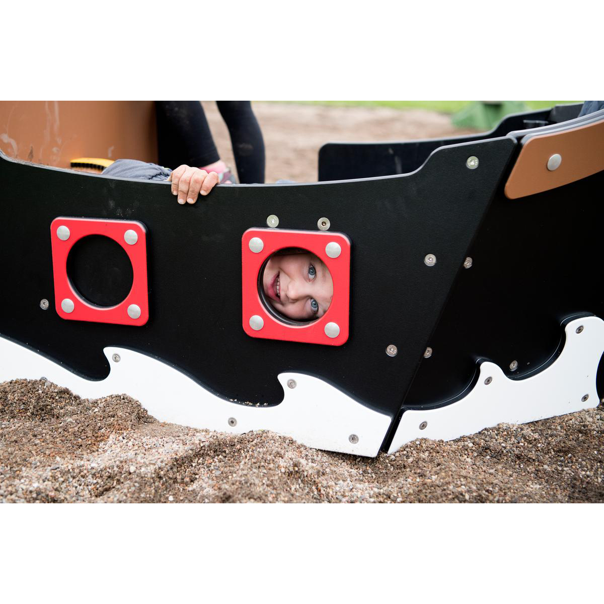 Kompakt piratskepp särskilt utformat för de yngsta barnen som bjuder in till trygg rollekslek, rörelse och upptäckande i ett hanterbart format.