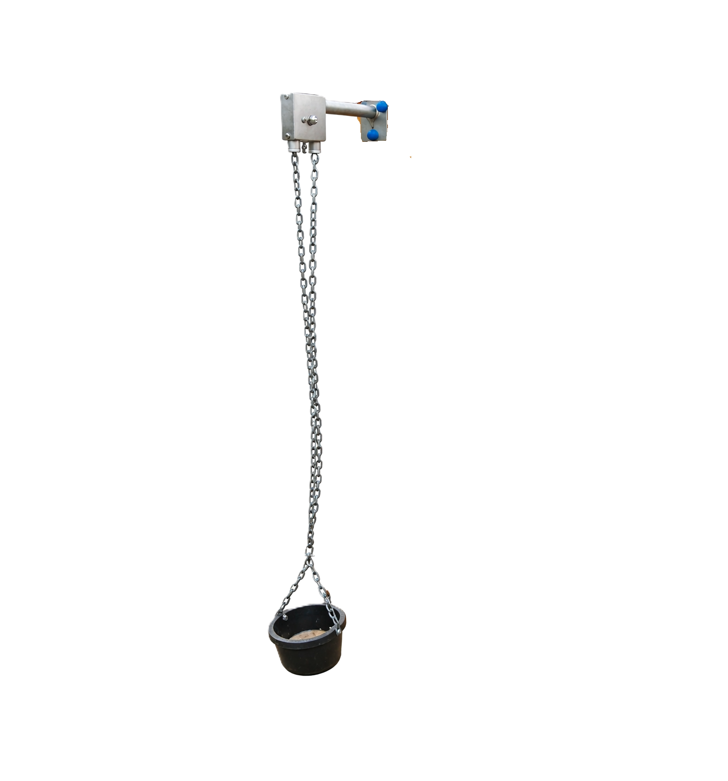Sandlådeelement utan stolpe, tillverkat av rostfritt stål för lång hållbarhet. Satsen innehåller 6 mm kedjor, justerbara bromsar, fingerskydd samt en sandhink med måtten 12x12x4 cm.
