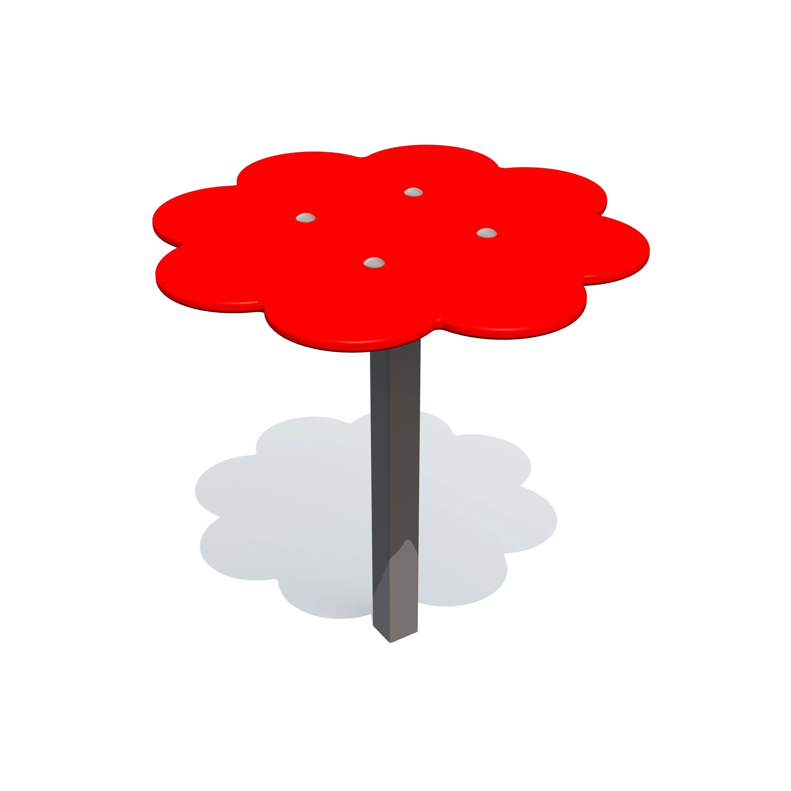 Färgglatt UV- och väderbeständigt bord i HDPE-plast med metallstödstolpe. Bordet används som arbetsyta för sandlek eller förvaring av leksaker. Stolpen monteras genom nedgjutning i betong för stabil användning.