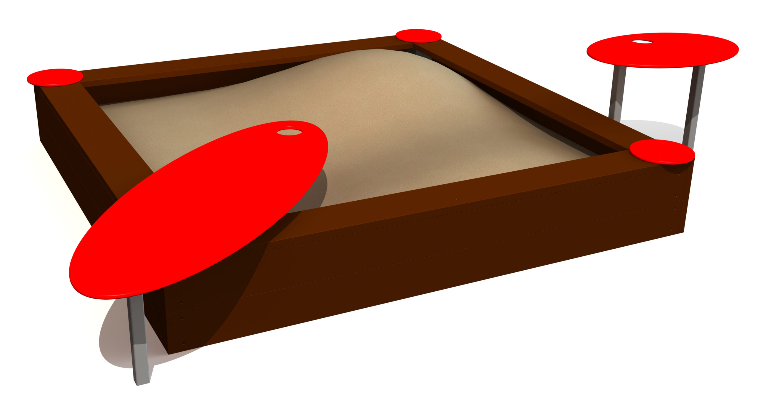 Sandlåda avsedd för barn i åldern 1–8 år, med plats för 6–8 barn beroende på sandlådans storlek. Sandlådan har två färgade ovala plattor i hörnen som kan användas för sandkakor eller förvaring av leksaker. Genom hålet i den stora plattan kan sand enkelt hällas tillbaka i sandlådan. Sandlådan är utrustad med ett rullstolsanpassat bord med måtten 750×500 mm och höjd 340 mm. Levereras med underduk som förhindrar att sand blandas med jord och motverkar ogräs.