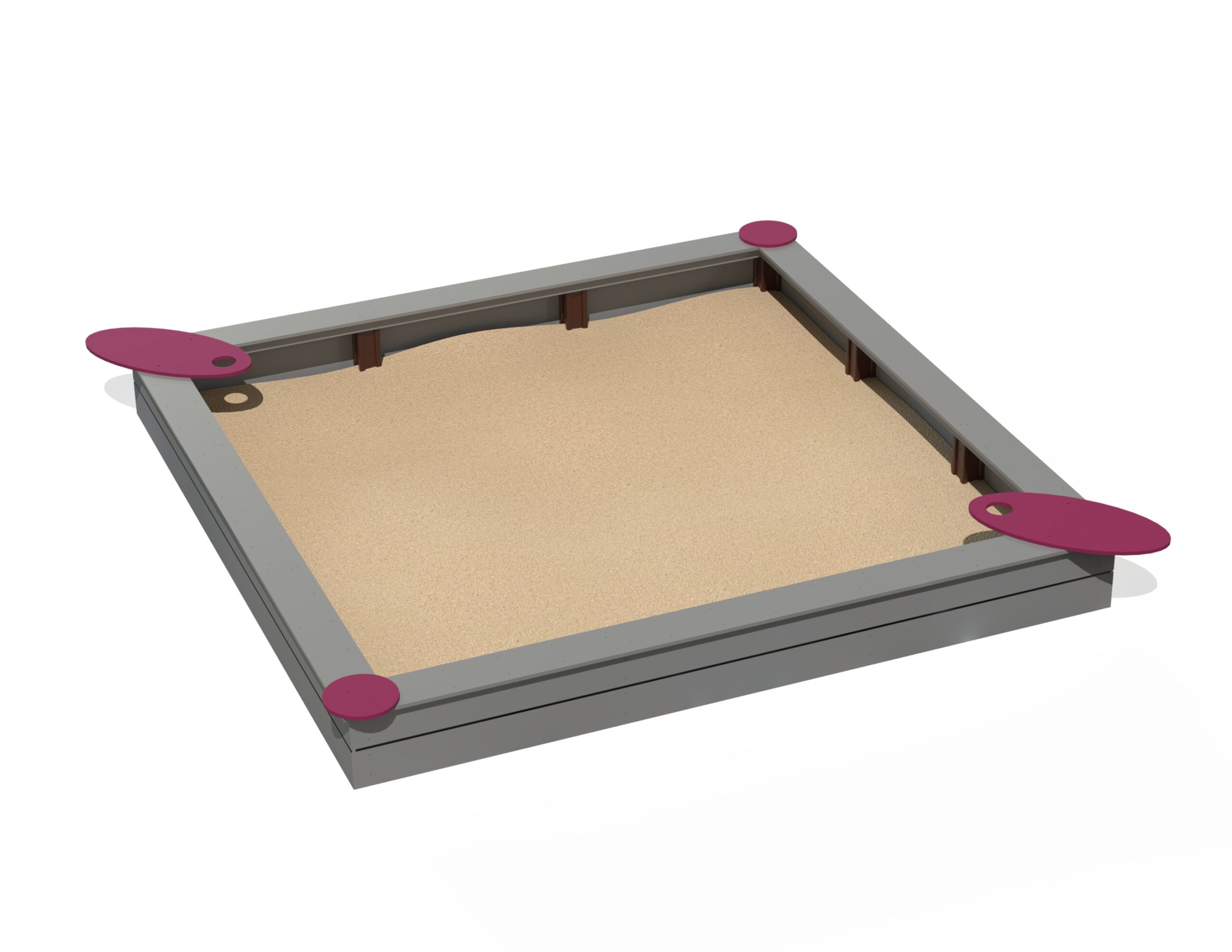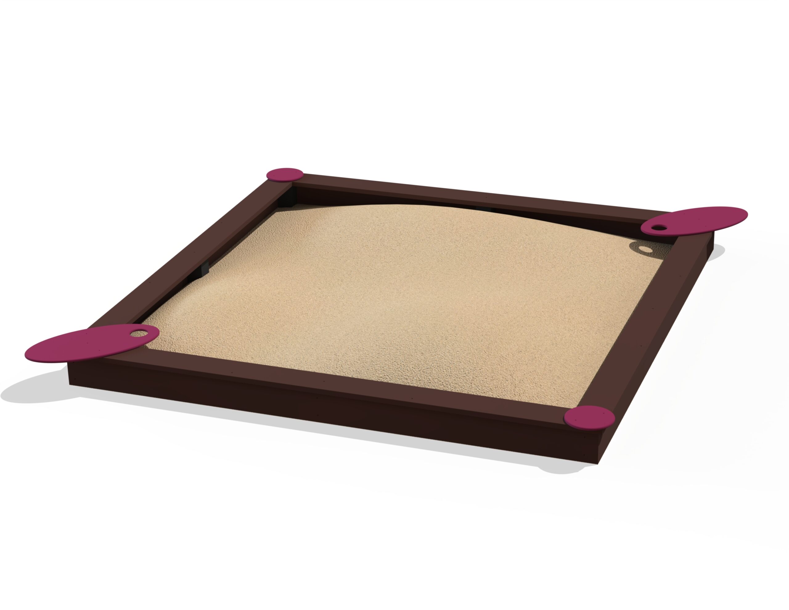 Sandlåda av laminerat trä med en färgglad oval och tre runda hörnplattor som ger extra ytor för sandlek och förvaring. Levereras med foder som förhindrar ogräs och jordblandning. Specialanpassat nätskydd kan beställas. Sandlådan levereras utan sand.