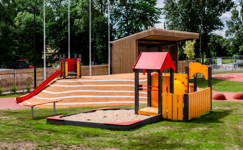 Lekcenter för yngre barn som kombinerar sandlek, rollspel och skyddad lek. Skapar en trygg och kreativ lekmiljö.