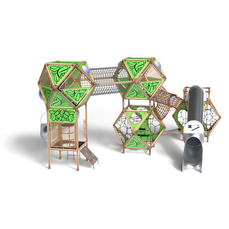 Imponerande lekställning med naturinspirerad design och sfärisk form. Skapar en engagerande lekplatsmiljö som uppmuntrar klättring, utforskande och samarbete.