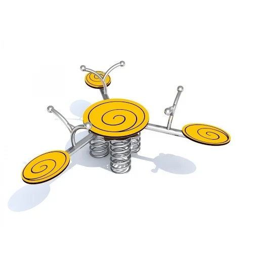 SIDI 3 är utrustad med tre säten och tre fjädrar, vilket möjliggör gemensam lek för flera barn. Den robusta konstruktionen i rostfritt stål är framtagen för offentliga miljöer. Handtagen avslutas med dekorativa snigelhorn som förstärker formspråket.