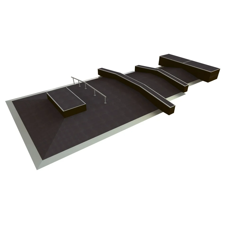 Skateboard Emilia är utvecklad för offentlig skateanläggning och används inom enskilda element. Modellen fungerar som trappelement i linjer och kombinationer där man vill skapa ett säkert och varierat åkflöde för flera nivåer av åkare. Konstruktionen är avsedd för utomhusbruk med fokus på hållbarhet, funktion och stabil drift vid hög belastning. Leverantörens benämning: Skate funbox L14.3 x W8 x H1. Produktmått: L 8 m, B 14,3 m, H 1 m.