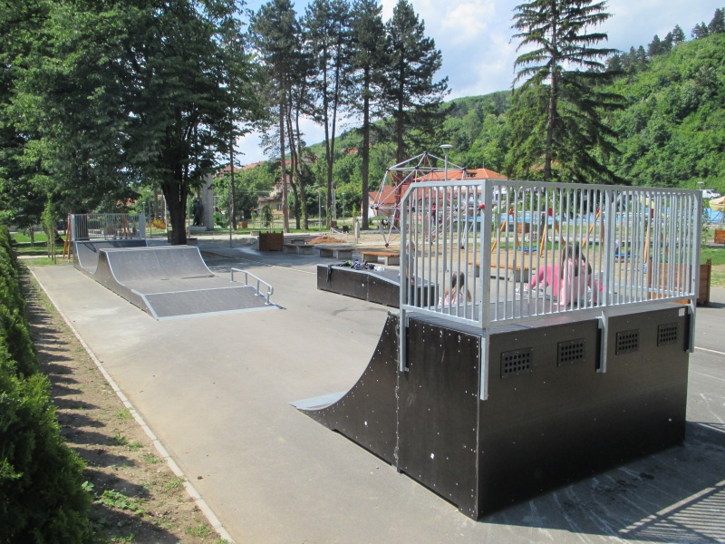 Skateboard Maja är utformad som skateparklösning för skateparker och offentliga aktivitetsytor. Mått: L 6 m, B 25 m, H 1,5 m.