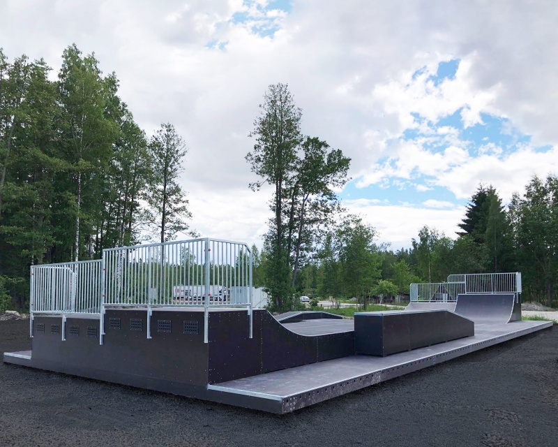 Skateboard Sara är utformad som miniramp för skateparker och offentliga aktivitetsytor. Mått: L 9 m, B 24 m, H 1,2 m.