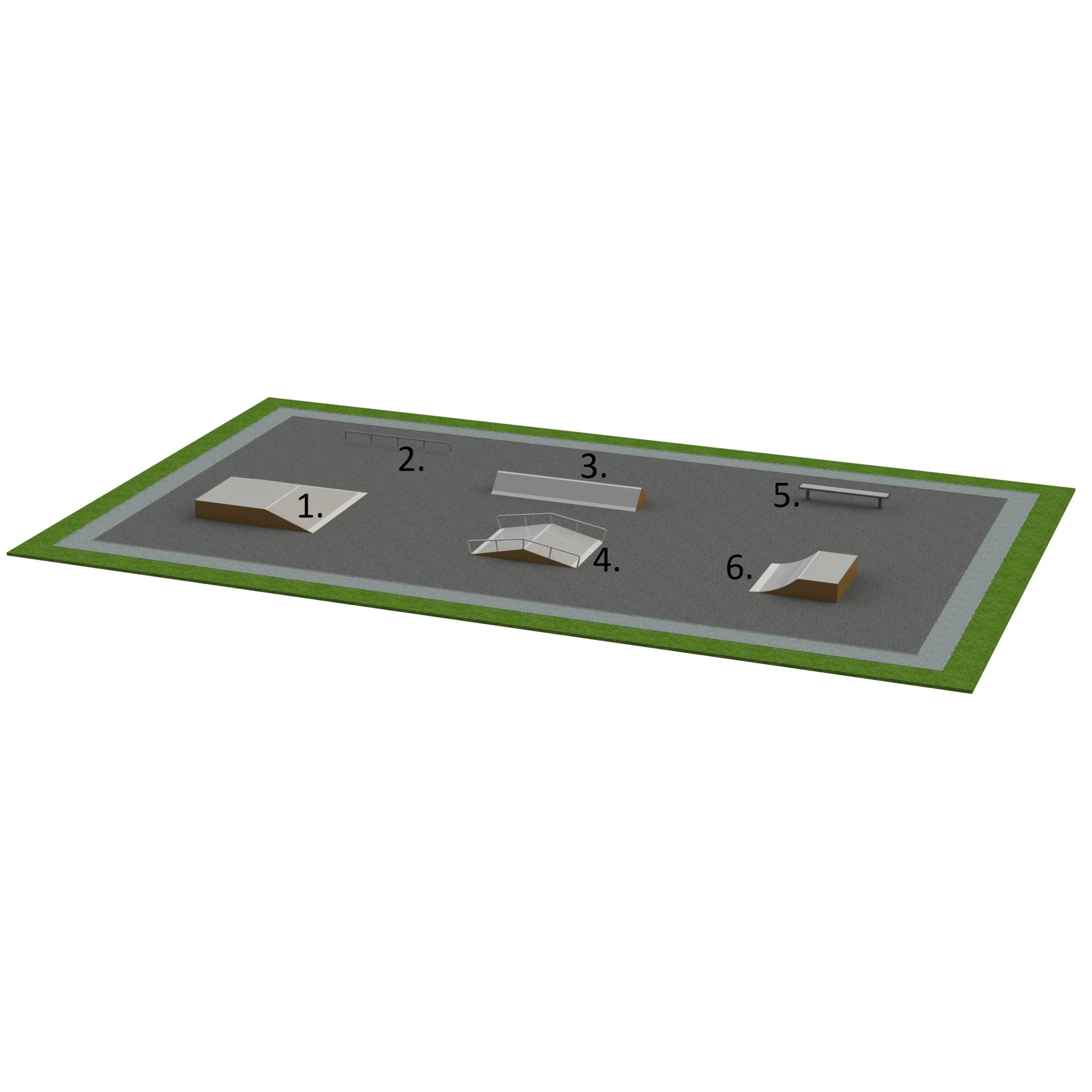 Skateboard Tindra är utvecklad för offentlig skateanläggning och används i skateparksmiljö. Modellen fungerar som plazaelement i linjer och kombinationer där man vill skapa ett säkert och varierat åkflöde för flera nivåer av åkare. Konstruktionen är avsedd för utomhusbruk med fokus på hållbarhet, funktion och stabil drift vid hög belastning. Leverantörens benämning: Plaza Skatepark L25 x W14 x H0,6. Produktmått: L 14 m, B 25 m, H 0,6 m.