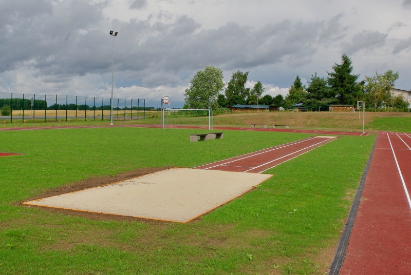 Längdhoppsbox utan sand avsedd för förskolor och skolor. Modell KHK01 är anpassad för barn 2–6 år med mått 3 × 1,6 m. Modell KHK02 är avsedd för skolbarn 6–15 år med mått 7 × 2 m. Vid montering ska ett fritt säkerhetsområde med minst 2 meters radie lämnas runt boxen. Rekommenderat underlag är packad granitsand eller gummiunderlagsmaterial.