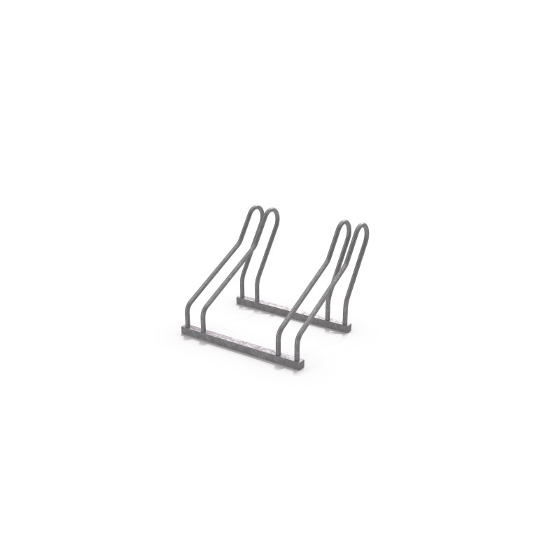 Cykelställ för 2 cyklar med två hjulfästen monterade på en bottenprofil.