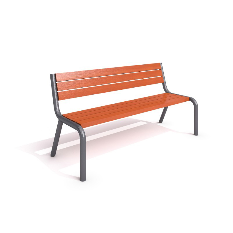 . Stål bänk med backrest made av galvanized stål och powder painted. Säte och backrest are made av spruce trä, available in oak och palisander colours.