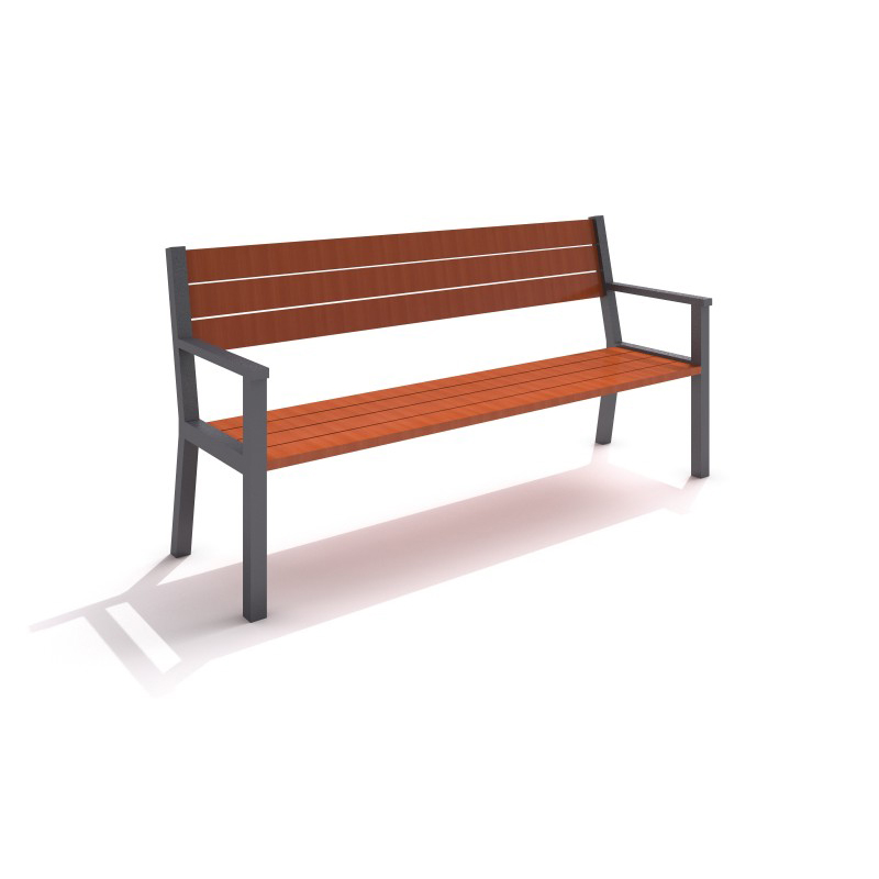 . Stål bänk med backrest och armrests made av galvanized stål och powder painted. Säte och backrest are made av spruce trä, available in oak och palisander colours.