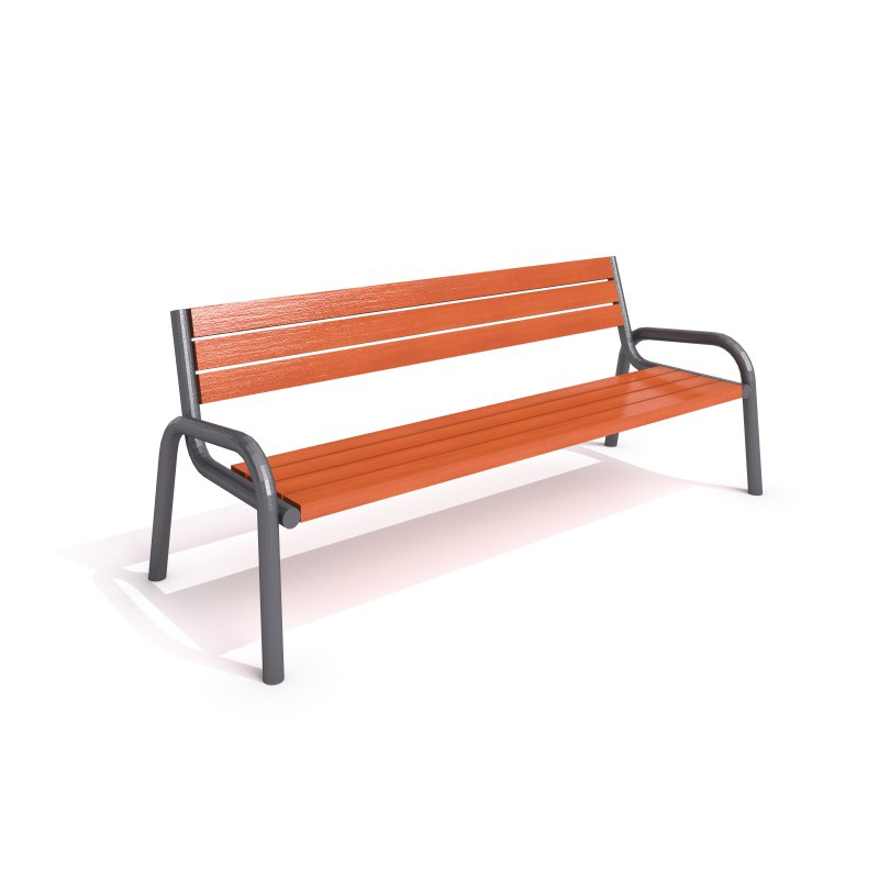. Stål bänk med backrest och armrests made av galvanized stål och powder painted. Säte och backrest are made av spruce trä, available in oak och palisander colours.
