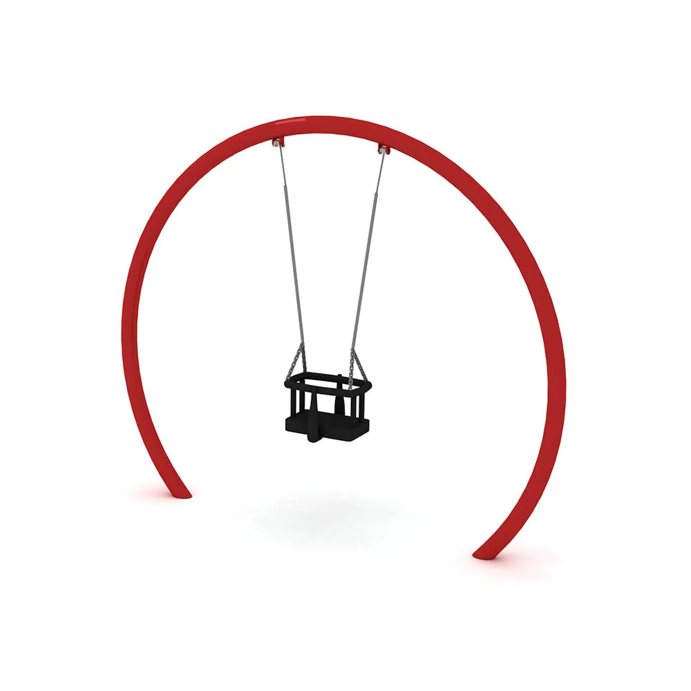 Gungstativ med babygungsits som ger trygg och bekväm gunglek för små barn. Utformad för stabilitet och stöd samt finns i röd eller grön färg.