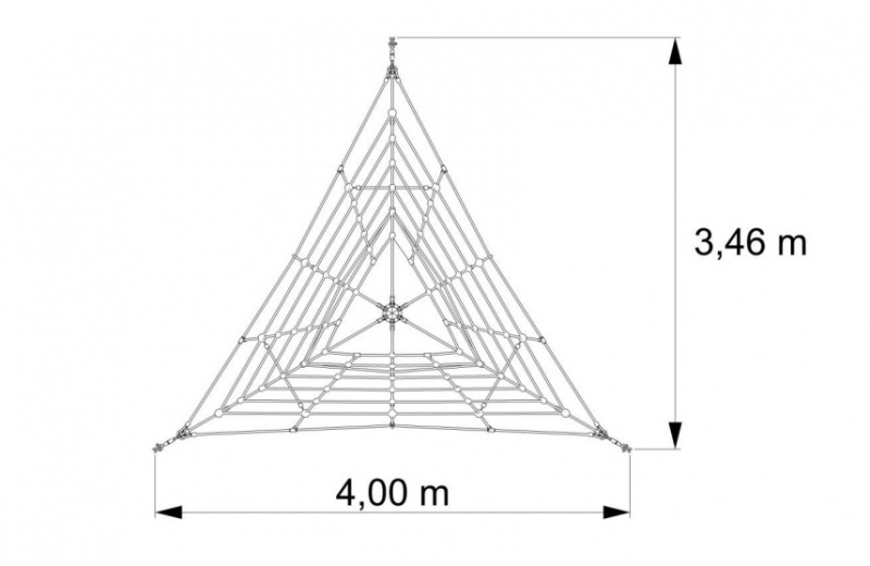 Produkten är utvecklad för lekplatser, förskolegårdar och andra offentliga utemiljöer där utrustningen behöver tåla regelbunden användning över tid. Modellen skapar en tydlig aktivitetsyta där barn kan utveckla rytm, balans och koordination i kontrollerad form. Mått enligt specifikation: cirka 4 x 3,46 x 3,5 m. Rekommenderad ålder: 3+. En hållbar lösning för långsiktig drift och trygg användning i offentlig utemiljö.