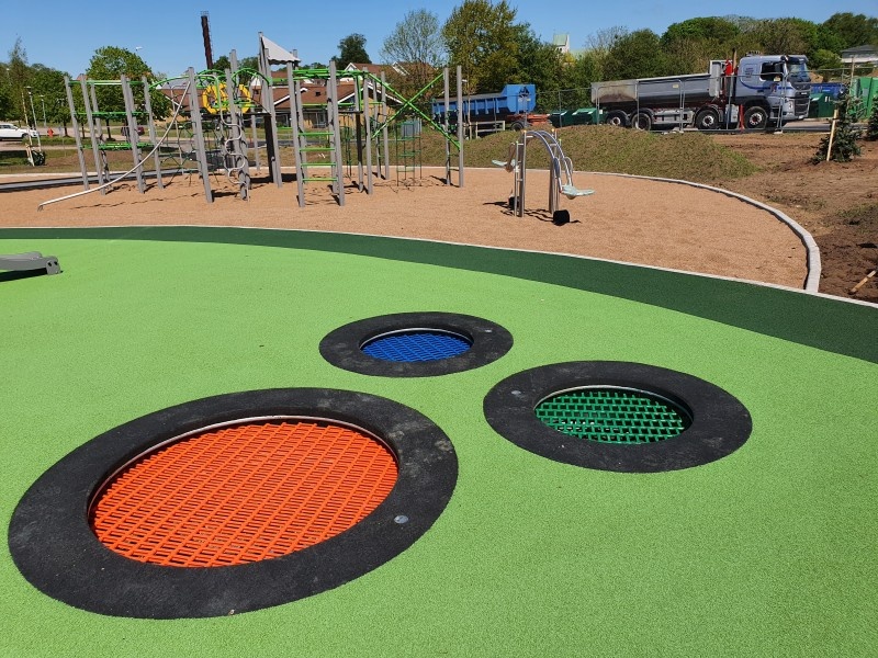 Studsmatta för offentlig utemiljö med robust konstruktion för säker hopplek och hög belastning.