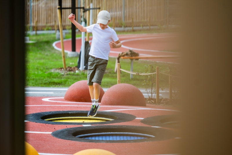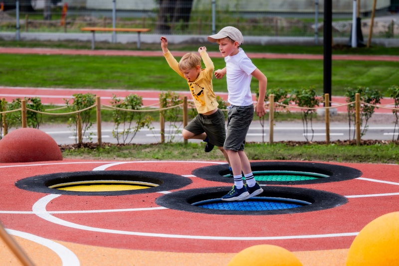 Produkten är utvecklad för lekplatser, förskolegårdar och andra offentliga utemiljöer där utrustningen behöver tåla regelbunden användning över tid. Modellen skapar en tydlig aktivitetsyta där barn kan utveckla rytm, balans och koordination i kontrollerad form. Mått enligt specifikation: cirka 2,98 x 2,98 m. Rekommenderad ålder: 3+. En hållbar lösning för långsiktig drift och trygg användning i offentlig utemiljö.