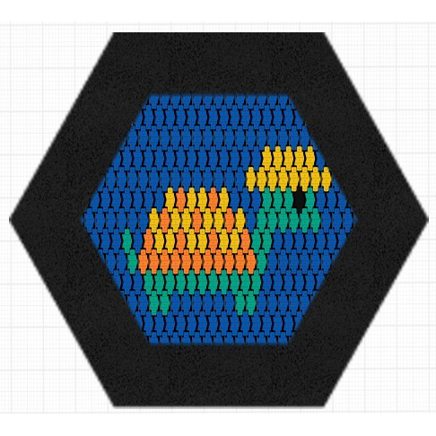 Hexagonal (bikakeformad) studsmatta med sköldpaddsmönster på hoppmattan, avsedd för intensiv användning på lekplatser. Hoppmattan är tillverkad av mycket slitstarka Hercules-lameller med V-form och förstärkta ribbor. Avståndet mellan lamellerna är endast 7 mm, vilket förhindrar att små föremål faller ner. Hoppmattan har ett sköldpaddsmotiv och är uppbyggd av lameller i gula, orange, gröna och blå färger. Studsmattan kan utrustas med öppningsbart lock. Garantin omfattar 25 år för metalllåda och 3 år för lameller.