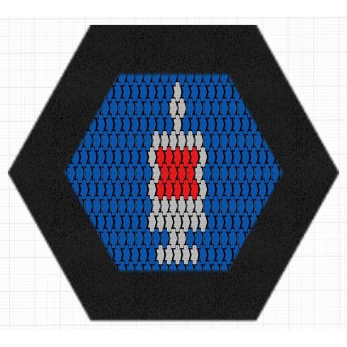 Hexagonal (bikakeformad) studsmatta med sprutmönster på hoppmattan, avsedd för intensiv användning på lekplatser. Hoppmattan är tillverkad av slitstarka Hercules-lameller med 37 mm bredd, V-form och förstärkta ribbor. Lamellavståndet på 7 mm förhindrar att små föremål faller ner. Hoppmattan har ett sprutmotiv och är uppbyggd av lameller i blå, röda och grå färger. Studsmattan kan utrustas med öppningsbart lock. Garantin omfattar 25 år för metalllåda och 3 år för lameller.