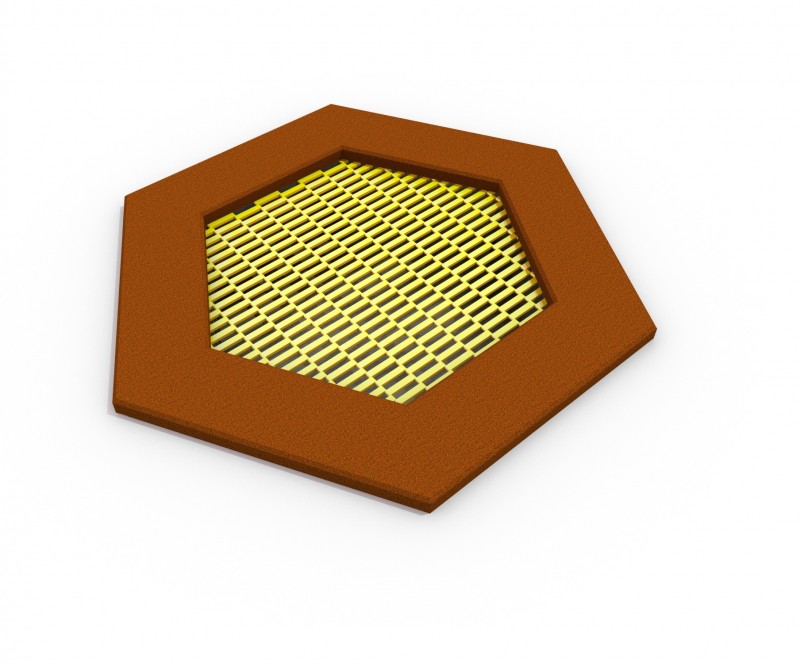Studsmattan är en av de mest omtyckta lekplatsattraktionerna och uppskattas av barn, tonåringar och vuxna. Den markmonterade konstruktionen ger hög säkerhet, kräver ingen ständig övervakning och är vandalsäker. Kanten är försedd med en stötdämpande säkerhetsmatta av gummi. Hoppytan mäter 97 x 112 cm och är anpassad för intensiv användning i offentliga miljöer.