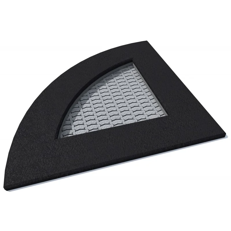 Kvartsformad studsmatta avsedd för intensiv användning på lekplatser. Hoppmattan är tillverkad av mycket slitstarka Hercules-lameller med V-formad konstruktion och förstärkta ribbor. Avståndet mellan lamellerna är endast 7 mm, vilket förhindrar att små föremål faller ner. Mattan finns i 8 färger och kan anpassas med grafik. Trampolinkragen av gummi finns i 2 standardfärger och 23 specialfärger samt kan dekoreras. Studsmattan kan utrustas med öppningsbart lock. Garantin omfattar 25 år för metalllåda och 3 år för lameller.