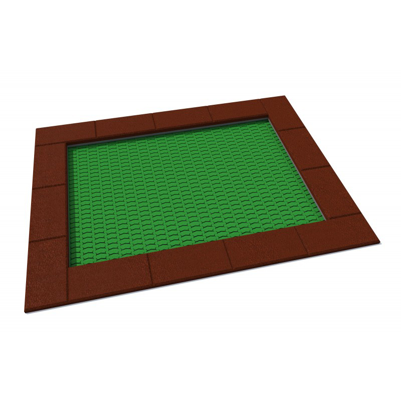 Rektangelformad studsmatta avsedd för intensiv användning på lekplatser. Hoppmattan är tillverkad av mycket slitstarka Hercules-lameller med V-form och förstärkta ribbor. Avståndet mellan lamellerna är endast 7 mm, vilket förhindrar att små föremål faller ner. Mattan finns i 8 färger och kan förses med grafik. Trampolinkragen av gummi finns i flera färgalternativ och kan dekoreras. Studsmattan kan utrustas med öppningsbart lock. Garantin omfattar 25 år för metalllåda och 3 år för lameller.
