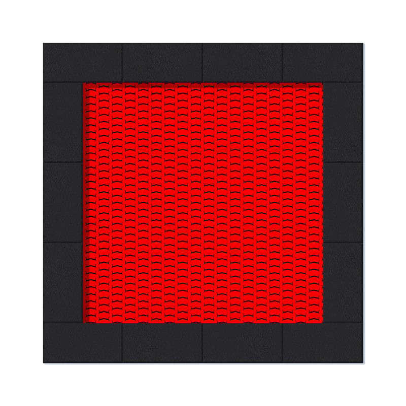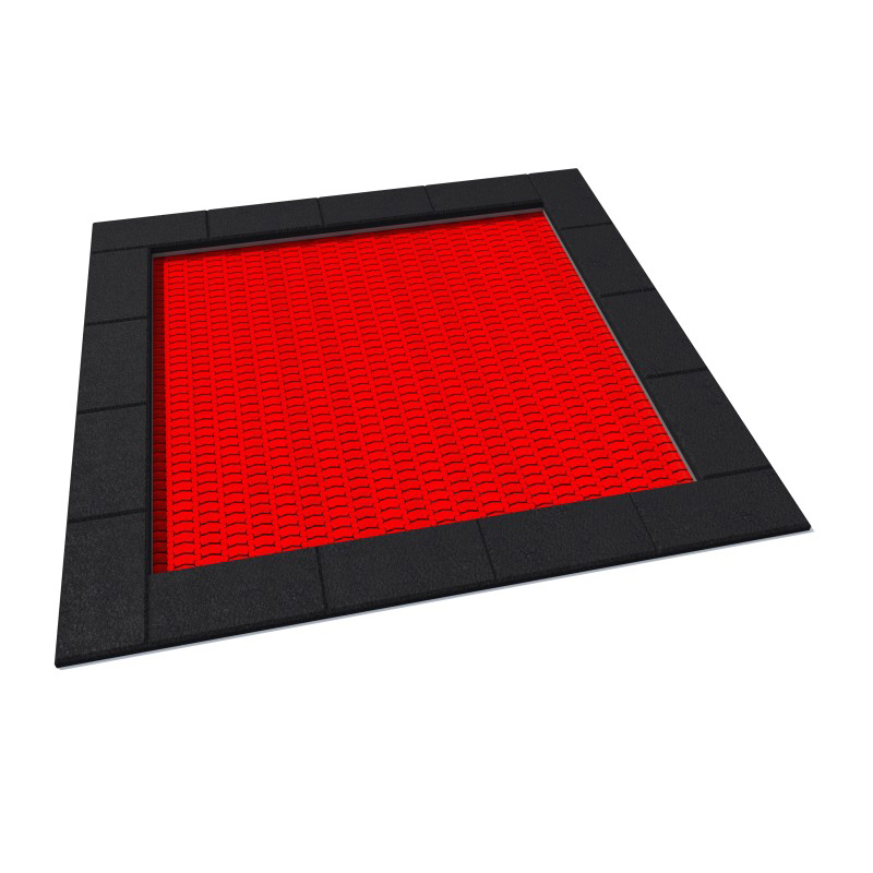 Fyrkantig studsmatta avsedd för intensiv användning på lekplatser. Hoppmattan är tillverkad av slitstarka Hercules-lameller med en minsta bredd på 37 mm, V-formad konstruktion och förstärkta ribbor. Lamellavståndet på endast 7 mm förhindrar att små föremål faller ner. Mattan finns i 8 färger och kan anpassas med grafik. Trampolinkragen av gummi finns i 2 standardfärger och 23 specialfärger samt kan dekoreras. Studsmattan kan utrustas med öppningsbart lock. Garantin omfattar 25 år för metalllåda och 3 år för lameller.