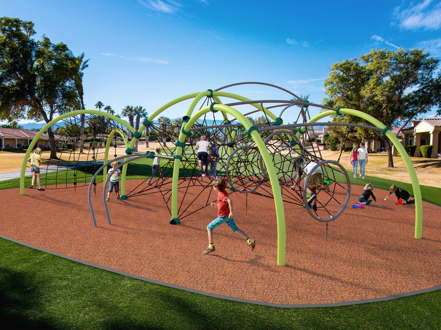 Produkten är utvecklad för lekplatser, förskolegårdar och andra offentliga utemiljöer där utrustningen behöver tåla regelbunden användning över tid. Modellen skapar en tydlig aktivitetsyta där barn kan utveckla rytm, balans och koordination i kontrollerad form. Mått enligt specifikation: cirka 12,4 x 11,6 x 3,8 m. Rekommenderad ålder: 5+. En hållbar lösning för långsiktig drift och trygg användning i offentlig utemiljö.