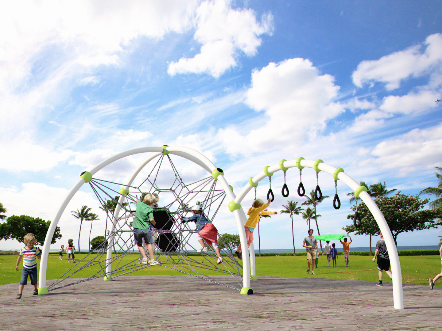 Produkten är utvecklad för lekplatser, förskolegårdar och andra offentliga utemiljöer där utrustningen behöver tåla regelbunden användning över tid. Modellen skapar en tydlig aktivitetsyta där barn kan utveckla rytm, balans och koordination i kontrollerad form. Mått enligt specifikation: cirka 6,1 x 9,3 x 3,5 m. Rekommenderad ålder: 5+. En hållbar lösning för långsiktig drift och trygg användning i offentlig utemiljö.