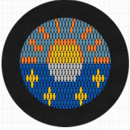 Rundformad studsmatta med himmelmönster på hoppmattan, avsedd för intensiv användning på lekplatser. Hoppmattan är tillverkad av mycket slitstarka Hercules-lameller med V-formad konstruktion och förstärkta ribbor. Avståndet mellan lamellerna är endast 7 mm, vilket ökar säkerheten. Hoppmattan har ett himmelmotiv och är uppbyggd av lameller i gula, orange, blå, ljusblå och grå färger. Studsmattan kan utrustas med öppningsbart lock. Garantin omfattar 25 år för metalllåda och 3 år för lameller.