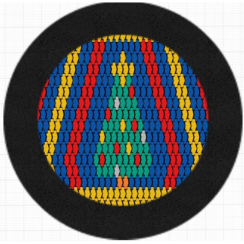Rundformad studsmatta med julgransmönster på hoppmattan, avsedd för intensiv användning på lekplatser. Hoppmattan är tillverkad av mycket slitstarka Hercules-lameller med en minsta bredd på 37 mm, V-formad konstruktion och förstärkta ribbor. Avståndet mellan lamellerna är endast 7 mm, vilket ökar säkerheten. Trampolinmattan pryds av en julgransillustration och är utförd i lameller i gula, gröna, röda, blå och grå färger. Studsmattan kan utrustas med öppningsbart lock för enkel rengöring. Garantin omfattar 25 år för metalllådan och 3 år för lamellerna.