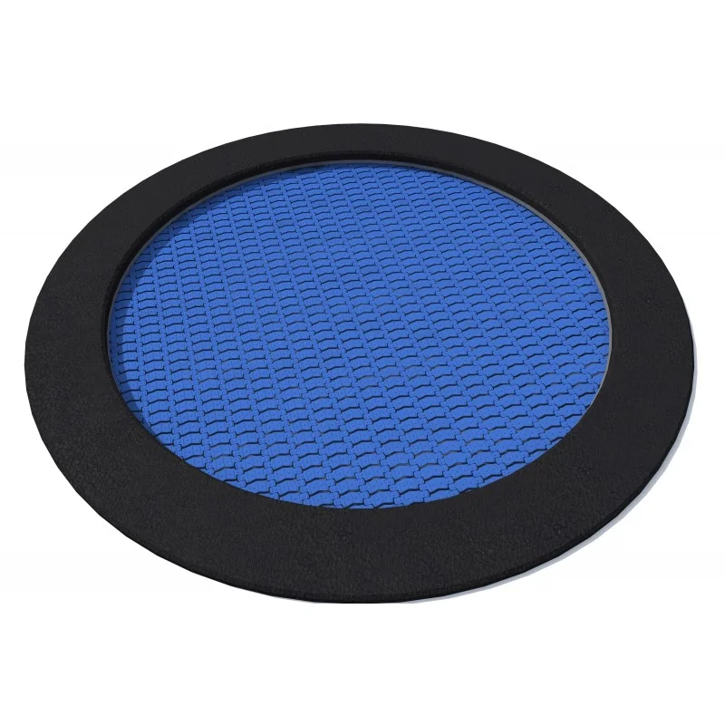 Rund studsmatta för intensiv användning på lekplatser.