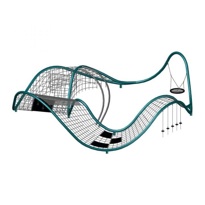 Produkten är utvecklad för lekplatser, förskolegårdar och andra offentliga utemiljöer där utrustningen behöver tåla regelbunden användning över tid. Modellen skapar en tydlig aktivitetsyta där barn kan utveckla rytm, balans och koordination i kontrollerad form. Mått enligt specifikation: cirka 12,1 x 12,4 x 3,1 m. Rekommenderad ålder: 5+. En hållbar lösning för långsiktig drift och trygg användning i offentlig utemiljö.