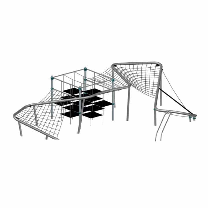 Produkten är utvecklad för lekplatser, förskolegårdar och andra offentliga utemiljöer där utrustningen behöver tåla regelbunden användning över tid. Modellen skapar en tydlig aktivitetsyta där barn kan utveckla rytm, balans och koordination i kontrollerad form. Mått enligt specifikation: cirka 12,7 x 13,1 x 3,2 m. Rekommenderad ålder: 5+. En hållbar lösning för långsiktig drift och trygg användning i offentlig utemiljö.