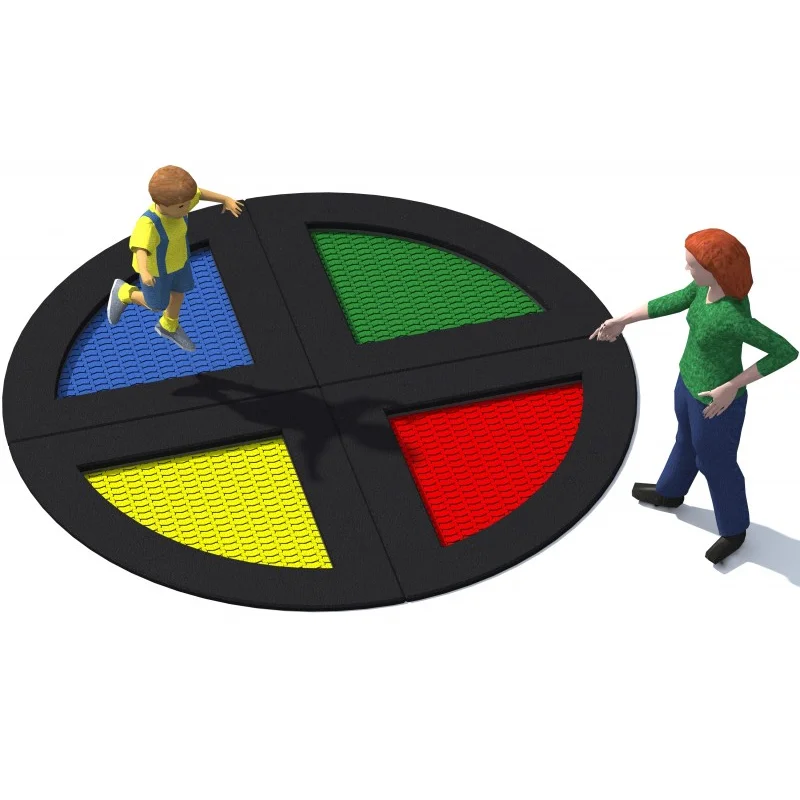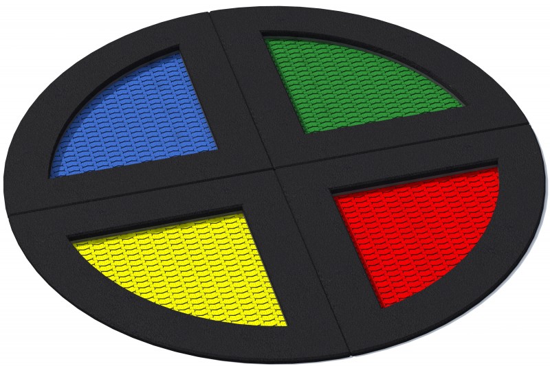 Set med 4 studsmattor bestående av en rund studsmatta uppdelad i fyra fjärdedelar, avsedd för intensiv användning på lekplatser. Hoppmattorna är tillverkade av slitstarka Hercules-lameller med en minsta bredd på 37 mm, V-form och förstärkta ribbor. Lamellavståndet på endast 7 mm ökar säkerheten. Mattorna finns i 8 färger och kan anpassas med grafik. Trampolinkrage finns i flera färger. Studsmattorna kan utrustas med öppningsbart lock. Garantin omfattar 25 år för metalllådor och 3 år för lameller.