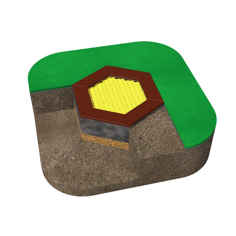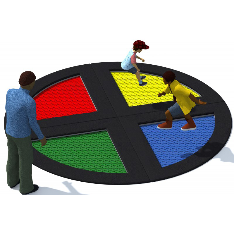 Set med 4 studsmattor bestående av en rund studsmatta uppdelad i fyra fjärdedelar, avsedd för intensiv användning. Hoppmattorna är uppbyggda av slitstarka Hercules-lameller med V-form och förstärkta ribbor. Avståndet mellan lamellerna är endast 7 mm, vilket förhindrar att små föremål faller ner. Mattorna finns i 8 färger och kan förses med grafik. Gummikrage finns i flera färgalternativ. Studsmattorna kan utrustas med öppningsbart lock. Garantin omfattar 25 år för metalllådor och 3 år för lameller.