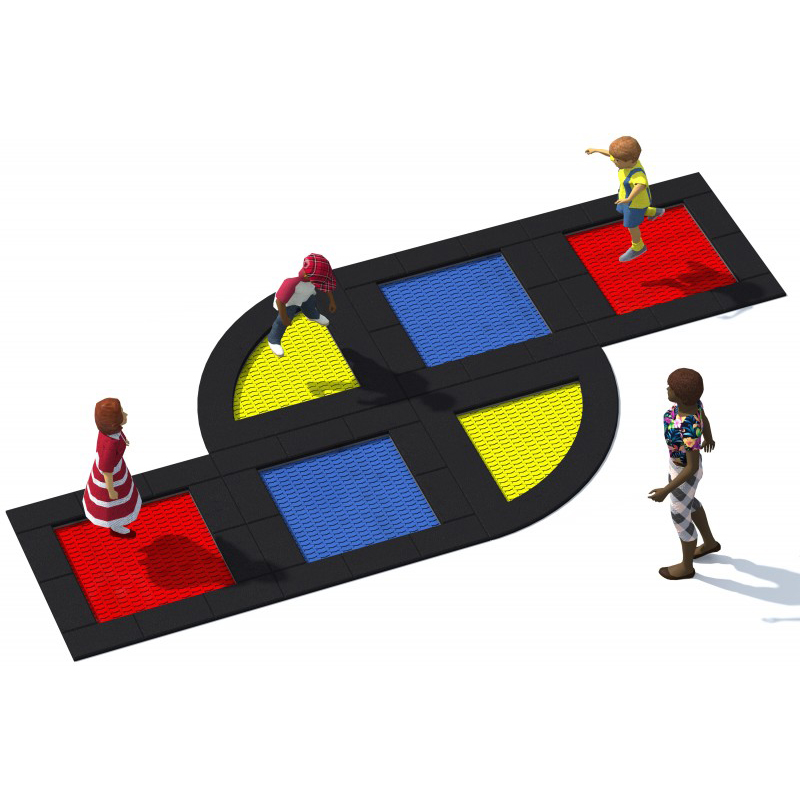 Set med 6 studsmattor anpassade för intensiv användning. Setet består av 4 fyrkantiga studsmattor och 2 kvartsformade studsmattor. Hoppmattorna är tillverkade av slitstarka Hercules-lameller med V-formad konstruktion och förstärkta ribbor. Lamellavståndet på 7 mm förhindrar att små föremål faller ner. Mattorna finns i 8 färger och kan anpassas med grafik. Trampolinkrage finns i flera färgalternativ. Studsmattorna kan förses med öppningsbart lock. Garantin omfattar 25 år för metalllådor och 3 år för lameller.