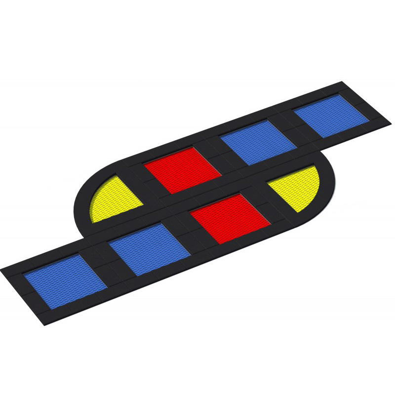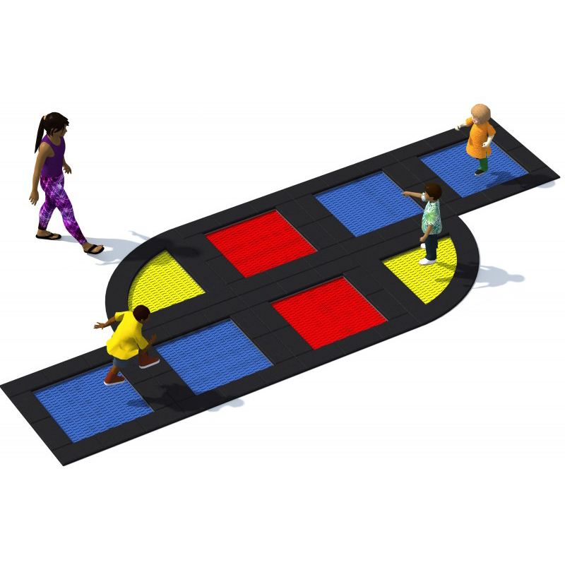Set med 8 studsmattor avsedda för intensiv användning. Setet består av 6 fyrkantiga studsmattor och 2 kvartsformade studsmattor. Hoppmattorna är tillverkade av slitstarka Hercules-lameller med halkfri yta, V-form och förstärkta ribbor. Lamellavståndet på endast 7 mm förhindrar att små föremål faller ner. Mattorna finns i 8 färger och kan förses med grafik. Trampolinkrage finns i flera färger. Studsmattorna kan utrustas med öppningsbart lock. Garantin omfattar 25 år för metalllådor och 3 år för lameller.