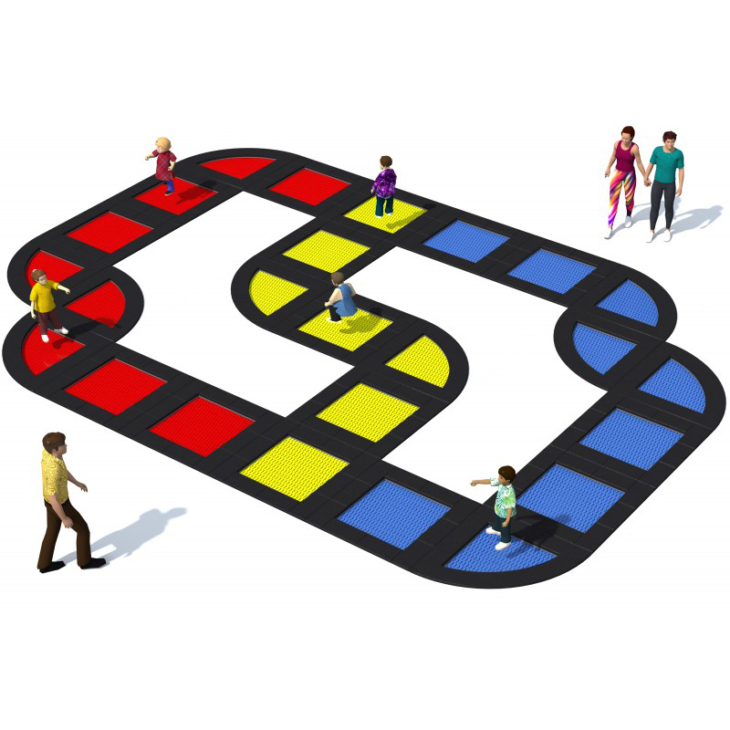 Set med 25 studsmattor avsedda för lekplatser med intensiv användning. Setet består av 15 kvadratiska studsmattor och 10 kvartsformade studsmattor (15 × Pako 150 och 10 × Kvartalo 150). Hoppmattorna är tillverkade av mycket slitstarka Hercules-lameller med V-form och förstärkta ribbor. Lamellavståndet på 7 mm förhindrar att små föremål faller ner. Konstruktionen inkluderar förstärkta kabeländar, fjädrar runt omkretsen, flexibel gummikrage och robust metallboxstruktur. Mattorna finns i 8 färger och kan förses med grafik. Studsmattorna kan utrustas med öppningsbart lock. Garantin omfattar 25 år för metalllådor och 3 år för lameller.