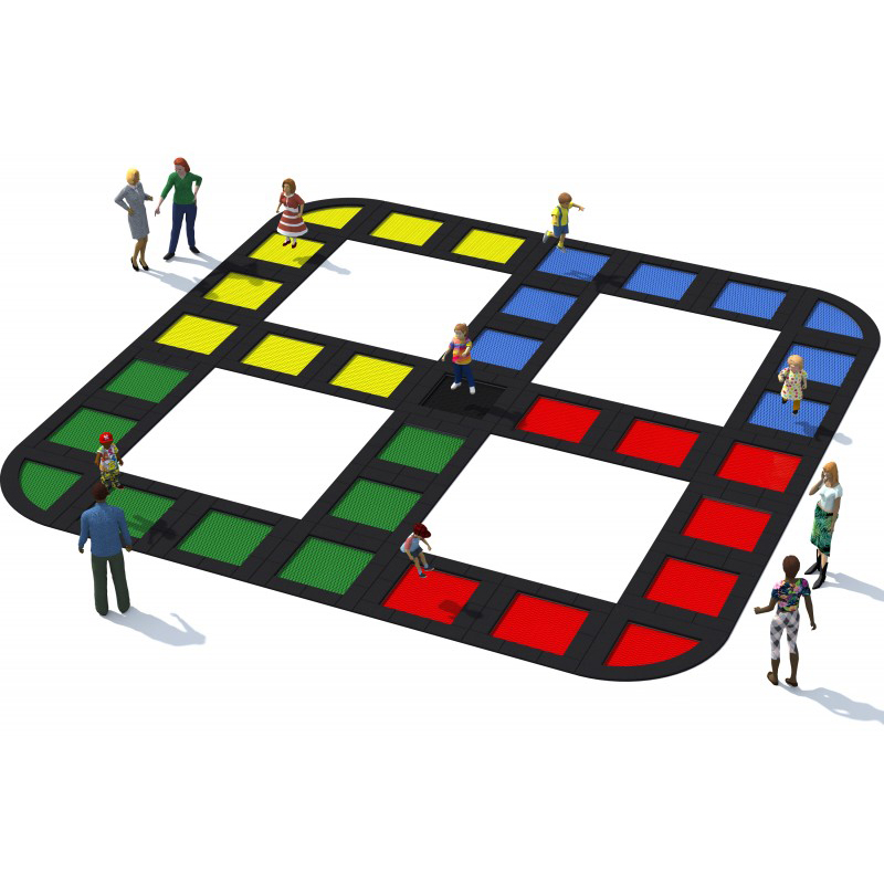 Set med 33 studsmattor avsedda för intensiv användning på lekplatser. Setet består av 29 kvadratiska studsmattor och 4 kvartsformade studsmattor (29 × Pako 150 och 4 × Kvartalo 150). Hoppmattorna är tillverkade av slitstarka Hercules-lameller med halkfri yta, V-formad konstruktion och förstärkta ribbor. Lamellavståndet på endast 7 mm ökar säkerheten. Konstruktionen omfattar fjädrar runt omkretsen, förstärkta kabeländar, flexibel gummikrage och metallboxstruktur. Mattorna finns i 8 färger och kan anpassas med grafik. Studsmattorna kan utrustas med öppningsbart lock. Garantin omfattar 25 år för metalllådor och 3 år för lameller.