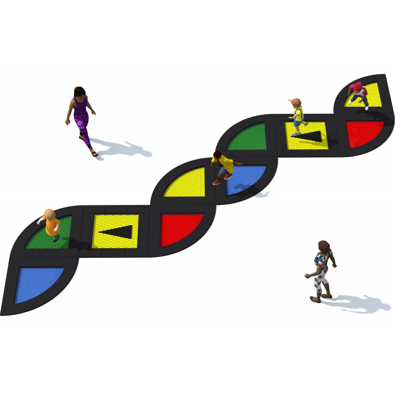 Set med 11 studsmattor för intensiv användning på lekplatser. Setet består av 3 kvadratiska studsmattor och 8 kvartsformade studsmattor. Hoppmattorna är tillverkade av slitstarka Hercules-lameller med en minsta bredd på 37 mm, V-form och förstärkta ribbor. Avståndet mellan lamellerna är endast 7 mm, vilket förhindrar att små föremål faller ner. Mattorna finns i 8 färger och kan förses med grafik. Trampolinkragen av gummi finns i flera färgalternativ. Studsmattorna kan utrustas med öppningsbart lock. Garantin omfattar 25 år för metalllåda och 3 år för lameller.