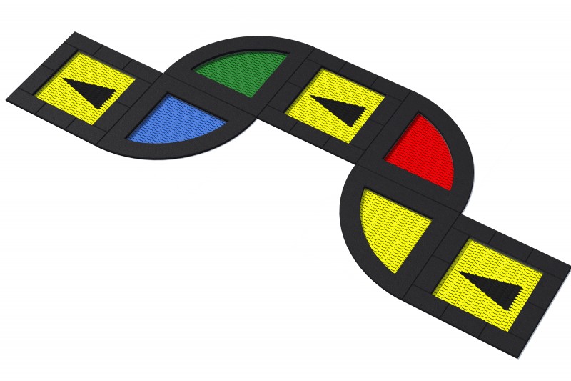 Set med 7 studsmattor för intensiv användning på lekplatser. Setet består av 3 kvadratiska studsmattor och 4 kvartsformade studsmattor (3 × Pako 150 och 4 × Kvartalo 150). Hoppmattorna är tillverkade av mycket slitstarka Hercules-lameller med V-form och förstärkta ribbor. Lamellavståndet på endast 7 mm ökar säkerheten. Konstruktionen omfattar fjädrar runt omkretsen, förstärkta kabeländar, flexibel gummikrage och metallboxstruktur. Mattorna finns i 8 färger och kan förses med grafik. Studsmattorna kan utrustas med öppningsbart lock. Garantin omfattar 25 år för metalllådor och 3 år för lameller.