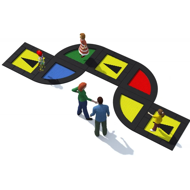 Set med 7 studsmattor för lekplatser.
