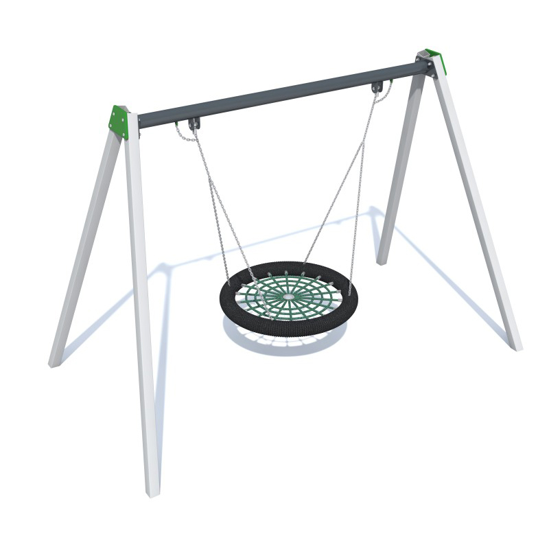MÅNEN är en enkel gunga med fågelbosits upphängd i kedjor. Den galvaniserade stålkonstruktionen är anpassad för utomhusbruk och intensiv användning. Gungan har ett enkelt och tidlöst uttryck och passar väl i både mindre och större lekmiljöer. Fågelbositsen finns i olika färger beroende på tillgänglighet.