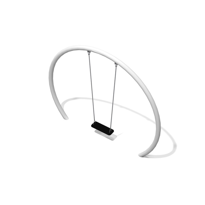 Stjärnport 1 är en enkel gunga med platt säte för en användare. Konstruktionen är grå med svart sits och ger ett stilrent, tidlöst uttryck. Lämplig för lekplatser och offentliga miljöer.