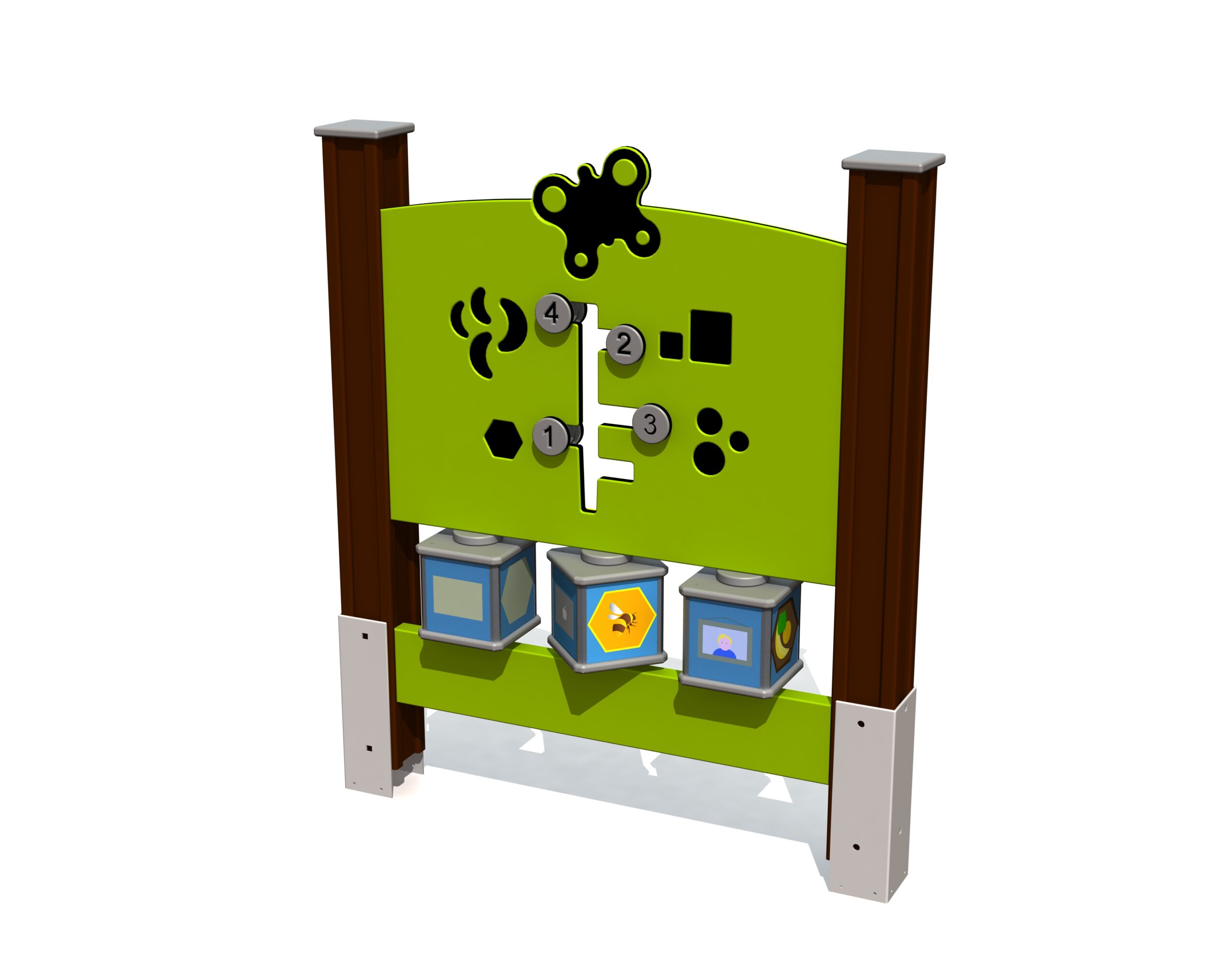 Pedagogisk aktivitetsvägg som tränar formigenkänning och räkning. Den stödjer barnens kognitiva utveckling genom lek.