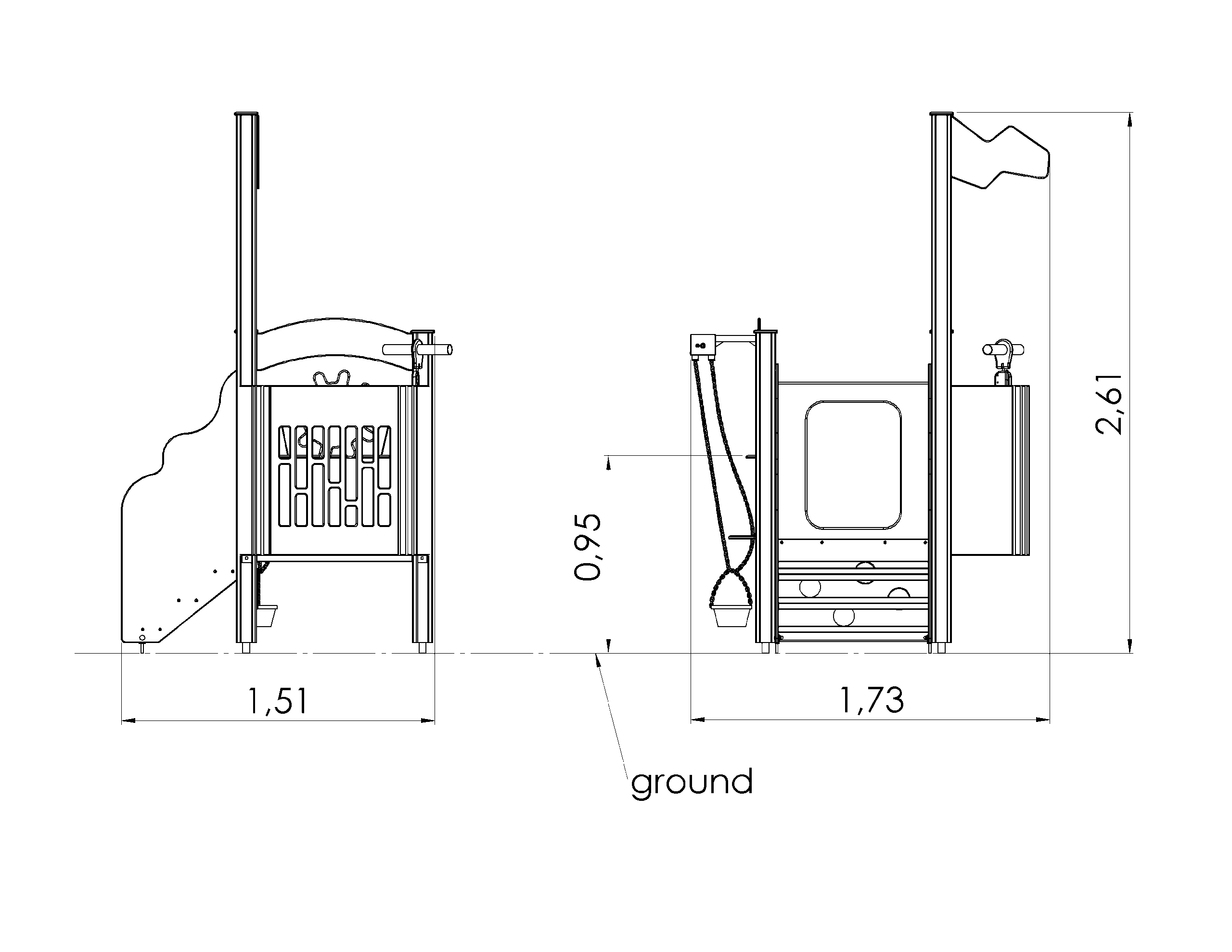 Produkten är utvecklad för lekplatser, förskolegårdar och andra offentliga utemiljöer där utrustningen behöver tåla regelbunden användning över tid. Produkten är utvecklad för återkommande användning i offentlig miljö med fokus på trygg och aktiv lek. Mått enligt specifikation: cirka 1,73 x 1,51 x 2,61 m. Rekommenderad ålder: 1+. En hållbar lösning för långsiktig drift och trygg användning i offentlig utemiljö.