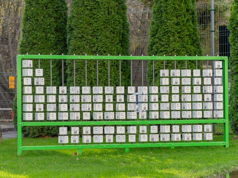 Ett praktiskt pedagogiskt verktyg som tar kemiundervisningen utomhus. Varje roterande kub representerar ett kemiskt grundämne och visar dess symbol, atomnummer, atomvikt och elektronegativitet, vilket gör abstrakta begrepp konkreta och begripliga.