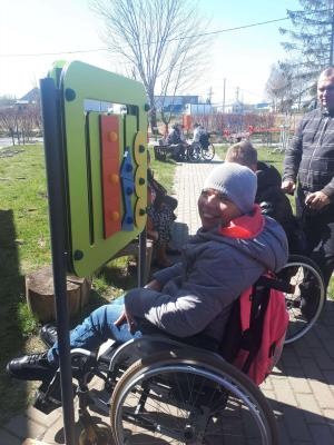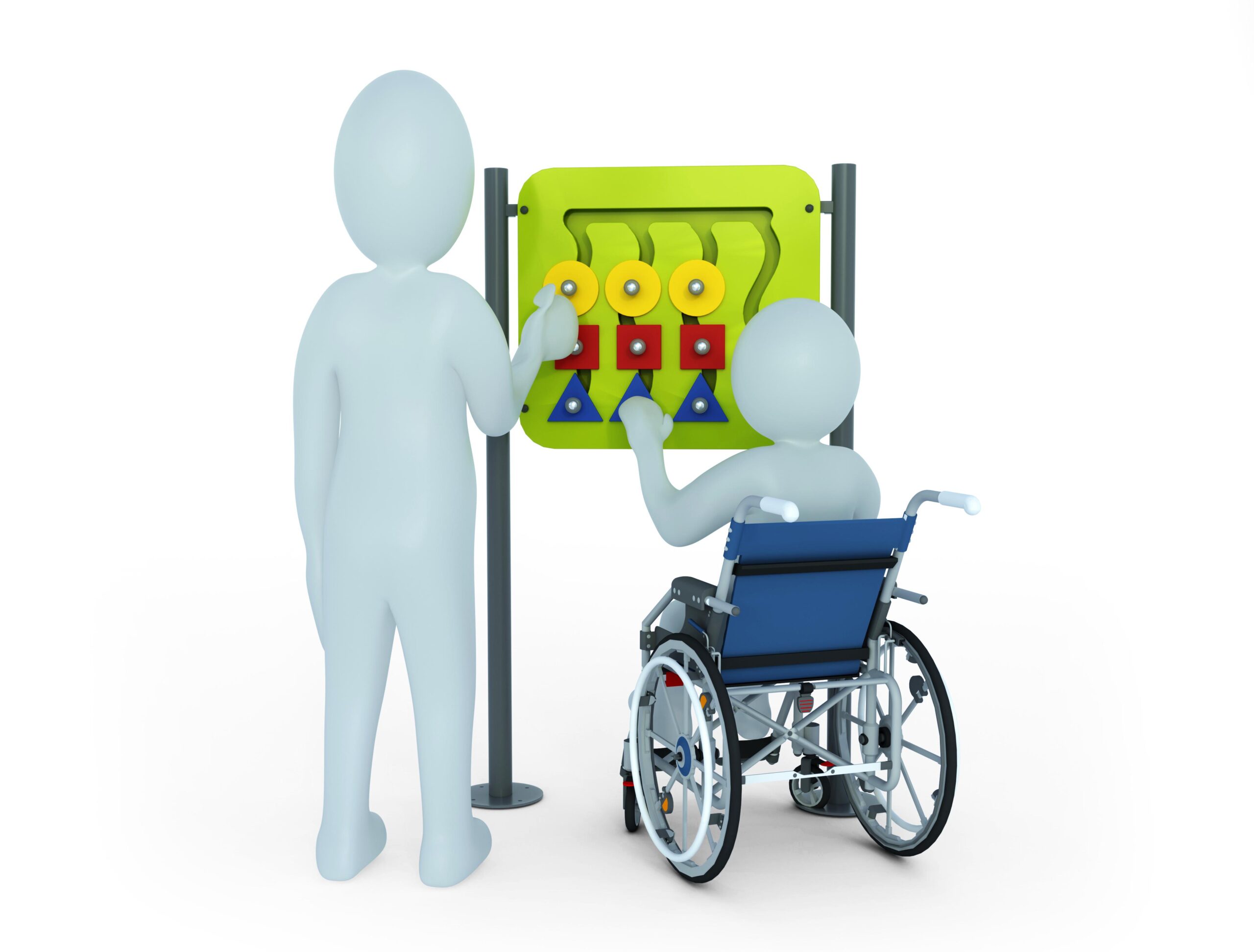 Inkluderande geometrisk lekpanel som kombinerar lek med kinesioterapi och social rehabilitering. Avsedd för utomhusbruk i parker, tillgängliga rekreationsområden, utomhusgym och privata trädgårdar. Enheten uppfyller kraven enligt EN 1176.