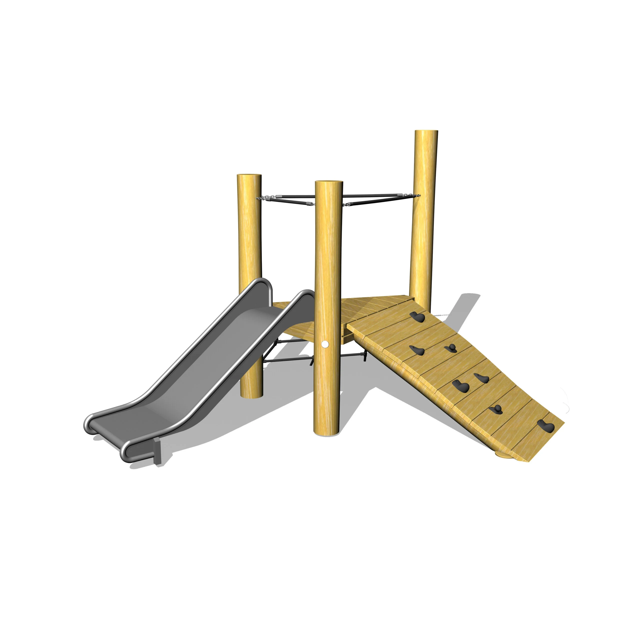 Small Tower-systemet är utvecklat för de yngsta barnen och passar särskilt bra i förskolor. Konstruktionen ger trygg tillgång till lek och bidrar till utveckling av balans, rörelse och självständighet.